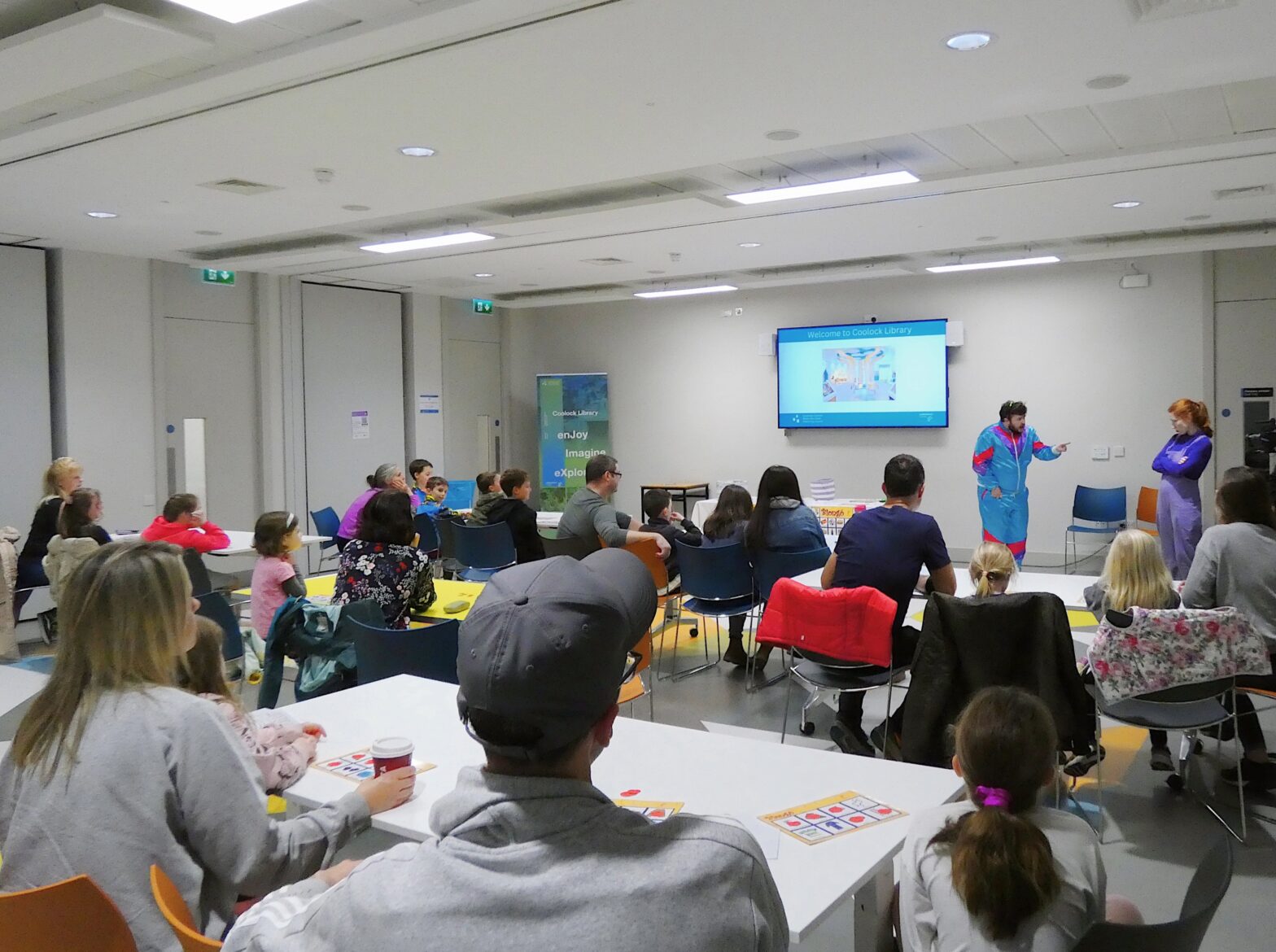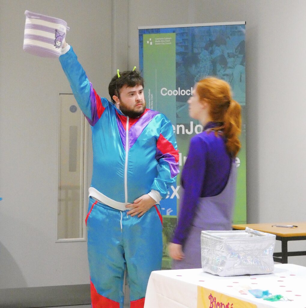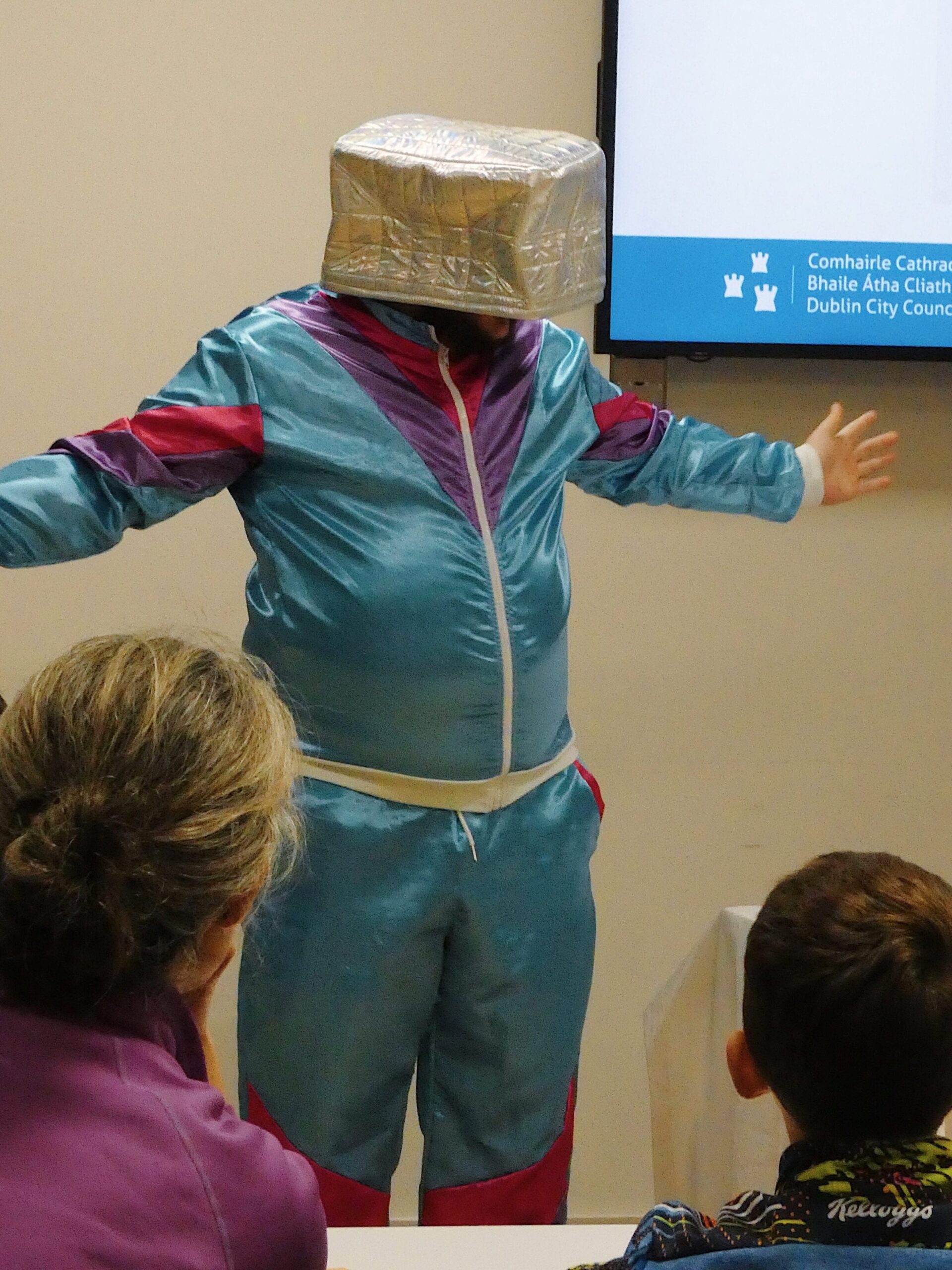 As part of the Bronntanas Festival, HK put on the show Alien Bingo in Coolock Library and Dun Laoghaire Library. An interactive show for children and adults about an alien who crash lands to earth, having only learned English for his trip. Quickly, he realises he must learn Irish to understand the bingo host who can only speak Irish. Full of misunderstandings and comedy which encourages the use of Irish at home.